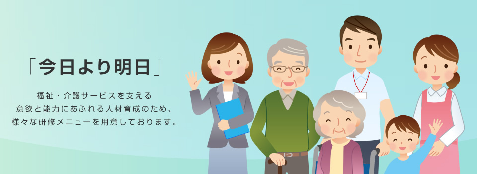 - 福祉研修センターでは、福祉・介護に関わる方々を対象に、日々同じ業務をこなすだけでなく、今日よりも明日と先を見据え、今、自分達ができることを実践して着実にキャリアアップを図っていくことができるよう、様々な研修会を企画・運営しています。